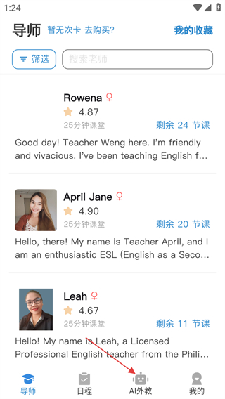 1、點擊頁面底部的AI外教,進(jìn)入AI課程頁面。