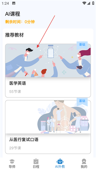2、在AI課程頁面,選擇要學(xué)習(xí)的課程,如醫(yī)學(xué)英語。