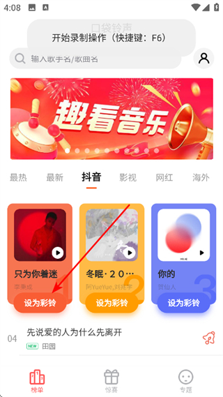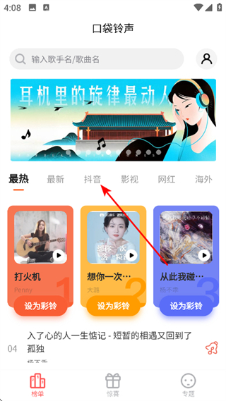 3、在抖音類鈴聲推薦中,選擇喜歡的鈴聲,點(diǎn)擊設(shè)為彩鈴。
