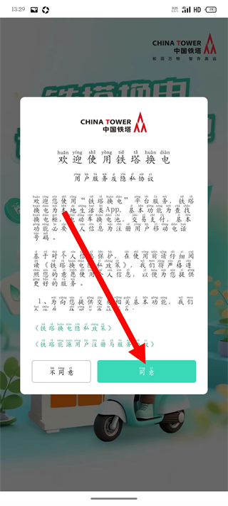 1、打開APP,在用戶服務(wù)及隱私協(xié)議頁面點(diǎn)擊同意。