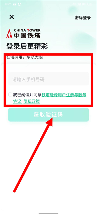 3、輸入手機(jī)號(hào)碼,勾選后,點(diǎn)擊獲取驗(yàn)證碼。
