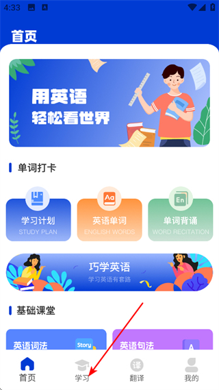 2、隨后我們可以在APP首頁(yè),點(diǎn)擊學(xué)習(xí),進(jìn)入學(xué)習(xí)頁(yè)面。