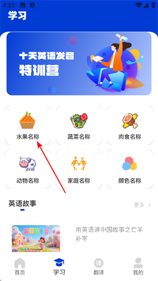 4、在水果名稱相關(guān)學(xué)習(xí)內(nèi)容頁(yè)面,可查看從零開始學(xué)英語(yǔ)等課程內(nèi)容。