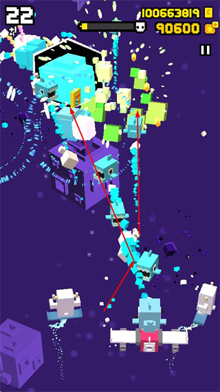 4、在特定場景中,會出現(xiàn)大型的、帶有光環(huán)等特效的目標(biāo),集中火力攻擊,觸發(fā)華麗的爆炸效果。