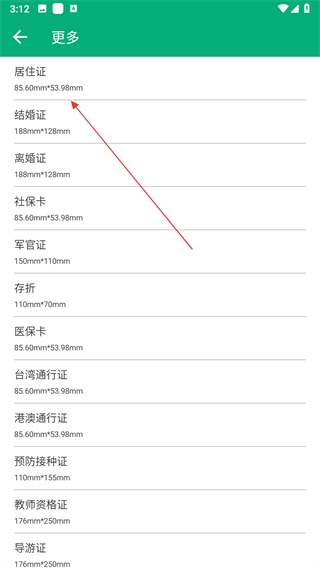 2、在列出的證件類型中,按需選擇其件類型,并點(diǎn)擊進(jìn)入。
