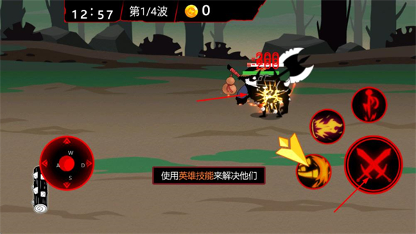 2、遇到敵人時(shí),點(diǎn)擊英雄技能按鈕,釋放技能攻擊敵人,對(duì)敵人造成傷害,消滅敵人。