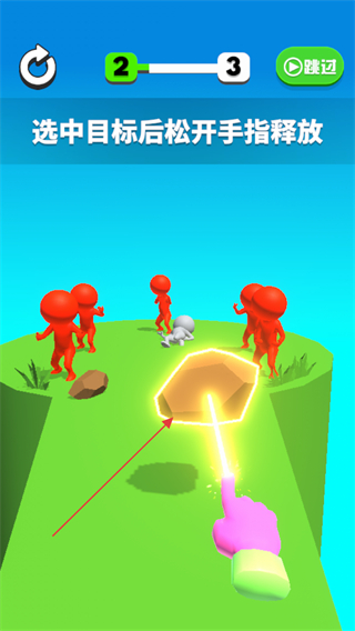 3、持續(xù)攻擊,讓紅色小人數(shù)量減少,直至清理掉關(guān)卡內(nèi)目標(biāo)敵人。