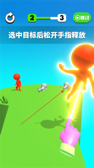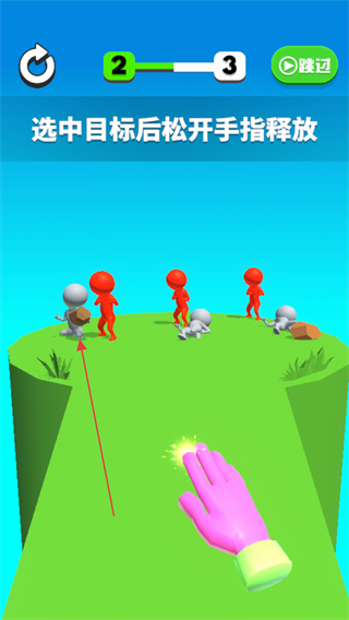2、操控粉色大手釋放石塊,瞄準(zhǔn)紅色小人,利用石塊攻擊他們。