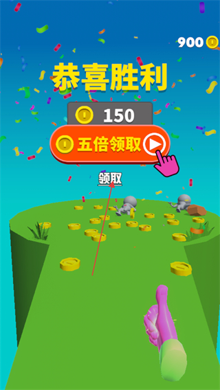 4、成功擊敗所有目標(biāo)后,出現(xiàn)“恭喜勝利”界面,點(diǎn)擊五倍領(lǐng)取或領(lǐng)取獲取金幣獎(jiǎng)勵(lì)。