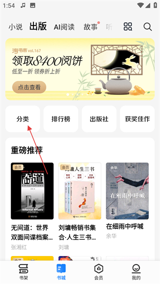 1、打卡掌閱,點(diǎn)擊頁(yè)面中的分類,進(jìn)入分類頁(yè)面。