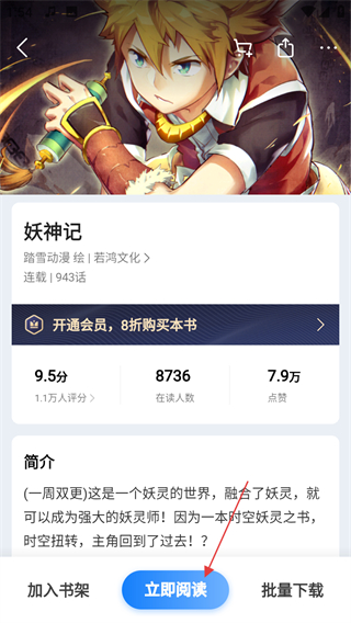 4、在漫畫詳情頁(yè)面,點(diǎn)擊立即閱讀,即可閱讀該漫畫。