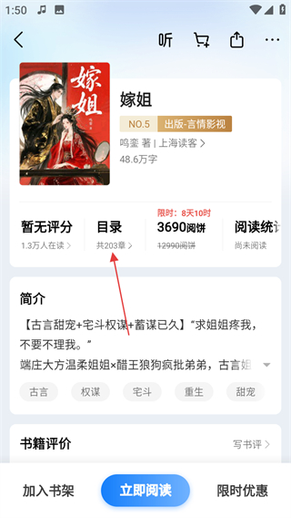 3、在書籍詳情頁面,點擊目錄,進(jìn)入目錄頁面。