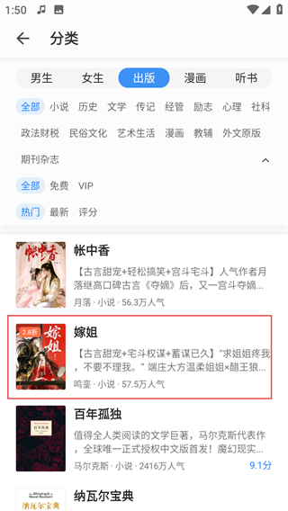 2、在分類頁面,選擇想要閱讀的書籍,進(jìn)入書籍詳情頁面。