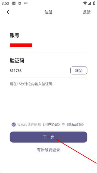 2、輸入賬號(hào)、驗(yàn)證碼,勾選同意協(xié)議后,點(diǎn)擊下一步,進(jìn)入密碼設(shè)置頁(yè)面。