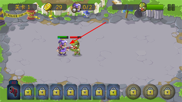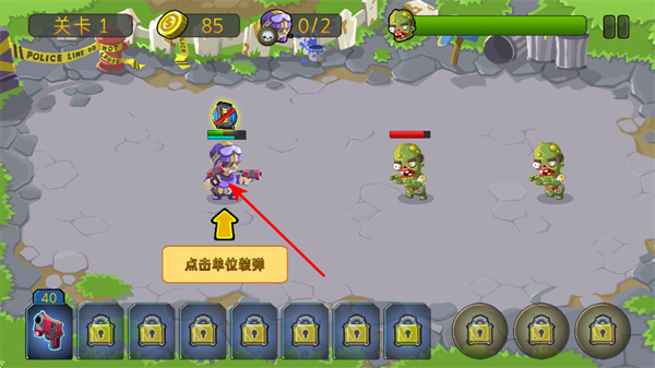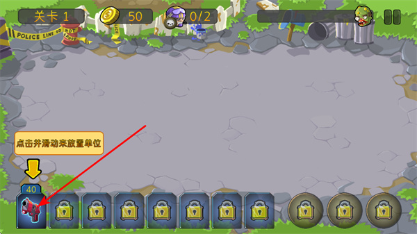 1、點擊滑動下方單位圖標(biāo),在場景中放置戰(zhàn)斗單位,抵御僵尸進(jìn)攻基礎(chǔ)操作,布置構(gòu)建防御陣線。