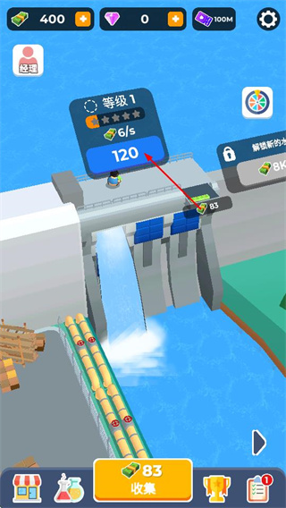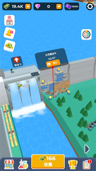 2、通過收集按鈕,獲取水壩產(chǎn)生的金幣收益,隨著水壩等級提升和經(jīng)營發(fā)展,金幣收益會不斷增加。