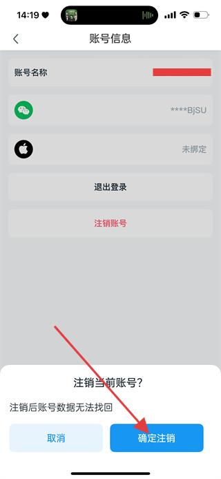 4、在注銷確認(rèn)窗口,點(diǎn)擊確定注銷,完成賬號注銷操作。