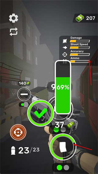 4、進(jìn)入武器升級(jí)界面,可提升槍械的傷害、射擊速度、精準(zhǔn)度、彈藥等屬性,增強(qiáng)武器的戰(zhàn)斗能力,更好地應(yīng)對(duì)后續(xù)敵人。