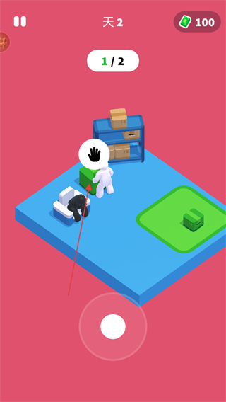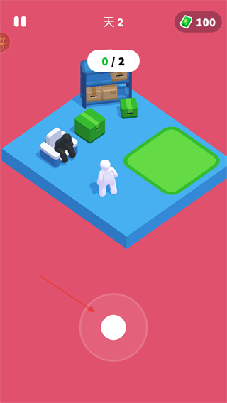 3、游戲進(jìn)入第二天,通過屏幕下方的虛擬搖桿控制小人移動,完成指定任務(wù)。