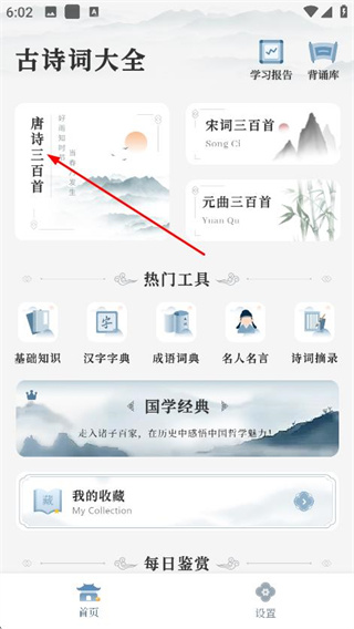 2、可點擊唐詩三百首,進入唐詩三百首頁面。