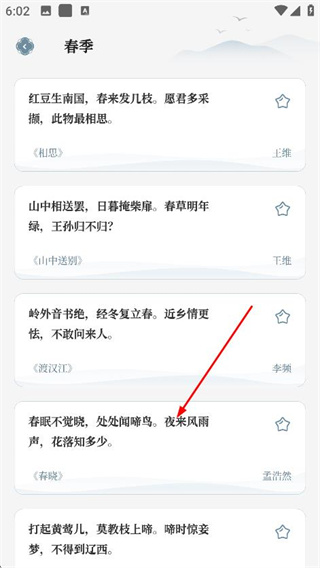 4、在春季唐詩頁面,可查看相思等春季相關唐詩內容。