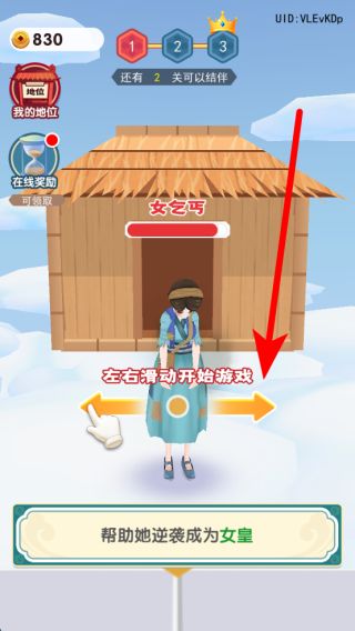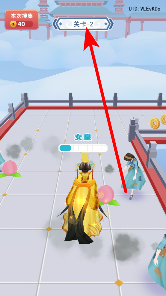 3、過關(guān)后,會進入關(guān)卡2,進入對應(yīng)的場景,操控女皇在場景內(nèi)移動,應(yīng)對各種元素和狀況。