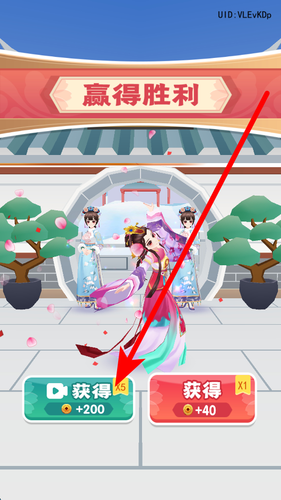 4、成功完成關(guān)卡挑戰(zhàn)后,會出現(xiàn)贏得勝利的界面,此時可選擇看視頻獲取獎勵的方式,能獲得相應(yīng)數(shù)量的金幣。