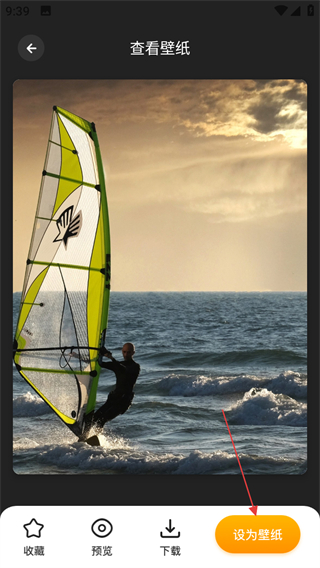 3、在壁紙?jiān)斍轫?yè)面,點(diǎn)擊設(shè)為壁紙,即可將該壁紙?jiān)O(shè)置為設(shè)備壁紙。