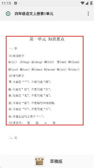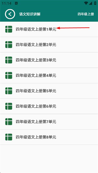 3、在語(yǔ)文知識(shí)講解單元列表頁(yè)面,點(diǎn)擊單元,進(jìn)入該單元知識(shí)要點(diǎn)頁(yè)面。