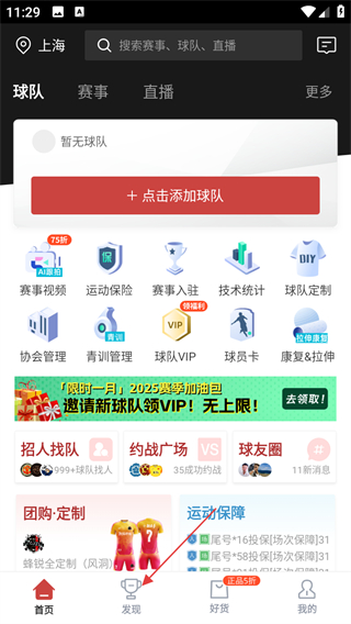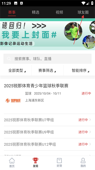 2、在發(fā)現(xiàn)頁面,點(diǎn)擊球友圈,進(jìn)入球友圈頁面。
