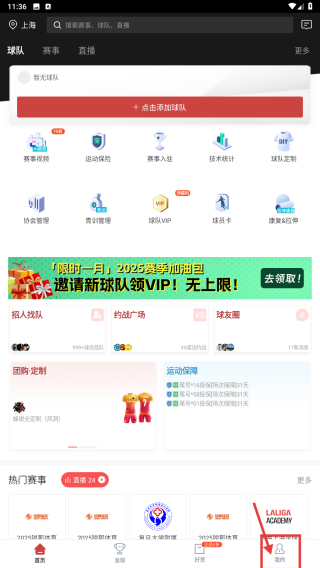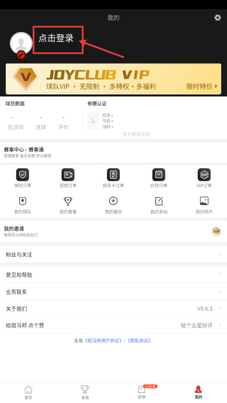 1、打開足球社交類應(yīng)用,點擊底部我的選項,進入個人中心頁面。