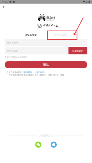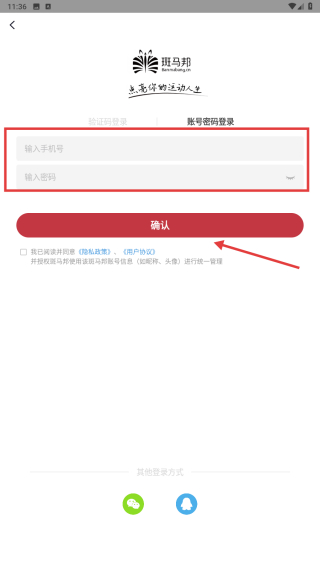 3、在登錄頁面,選擇賬號密碼登錄方式,輸入手機號和密碼。