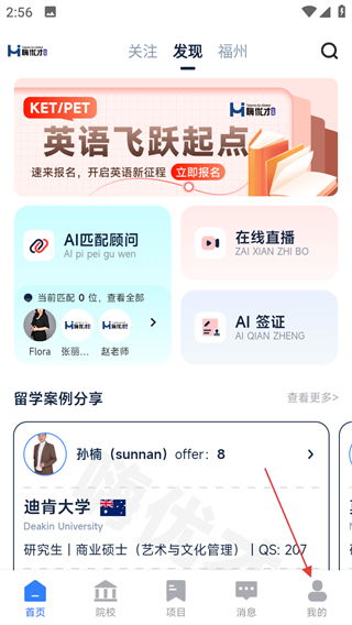 2、沉浸式院校溝通:通過在線直播實現(xiàn)用戶與海外院校代表直接對話,定期組織云逛校園、留學生經(jīng)驗分享活動,直觀了解院校環(huán)境與就讀體驗。