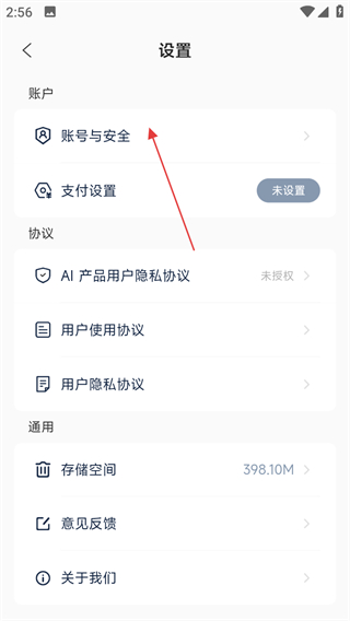 3、在設置頁面,點擊賬號與安全,進入賬號與安全設置頁面。