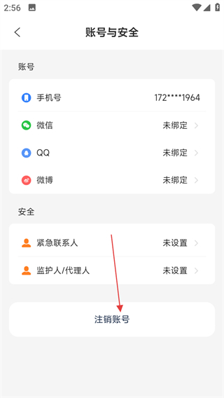 4、在賬號與安全頁面,點擊注銷賬號,可進行賬號注銷操作。