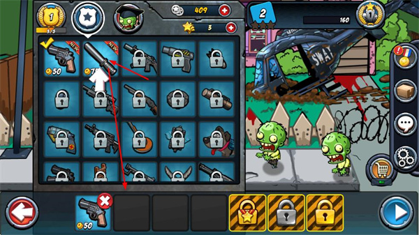 1、在武器選擇界面,可花費金幣解鎖和選擇不同的武器,提升戰(zhàn)斗能力。