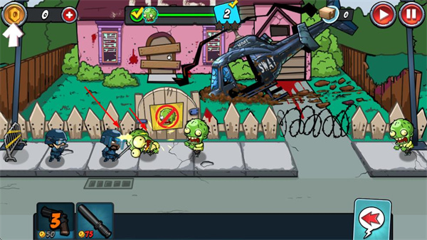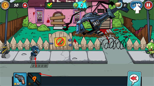3、士兵會自動攻擊靠近的僵尸,利用武器的攻擊效果消滅僵尸,保護(hù)家園,同時要注意僵尸的數(shù)量和進(jìn)攻節(jié)奏。
