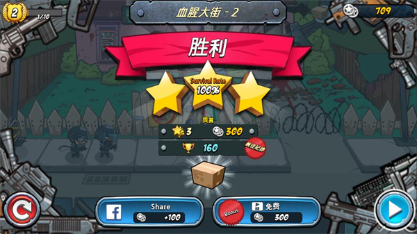 4、成功消滅所有來襲的僵尸后,關(guān)卡勝利,可獲得獎勵,還能開啟寶箱獲取額外獎勵,提升游戲進(jìn)度和實力。