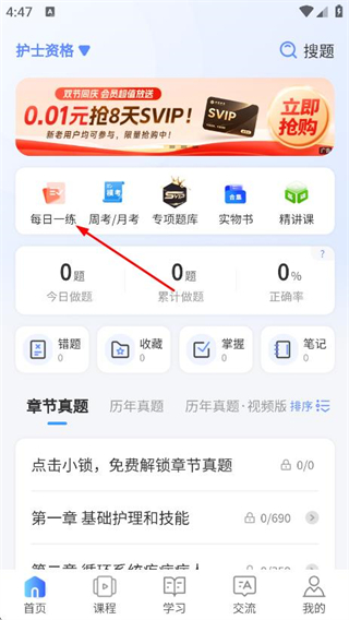 1、在申庭教育首頁,點擊每日一練,進入每日一練頁面。