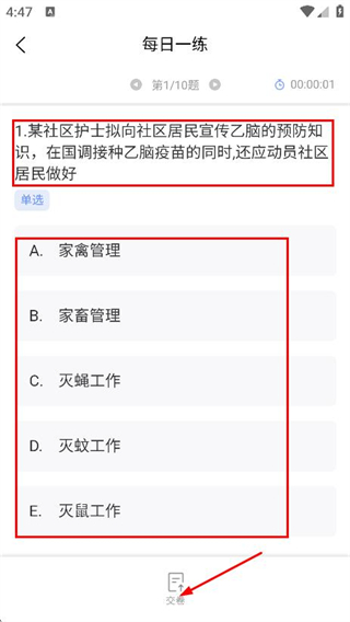 3、在完成題目作答后,點擊交卷,查看每日一練成績結果。