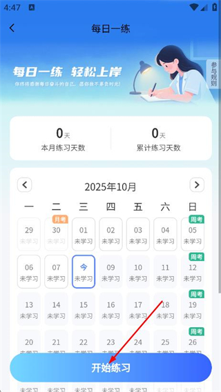 2、在每日一練頁面,點擊開始練習,進入練習答題頁面。