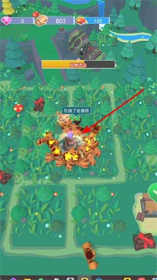 4、收集木材資源,在場(chǎng)景中尋找木材資源并收集,積累以滿足建設(shè)和升級(jí)的需求,助力發(fā)展。