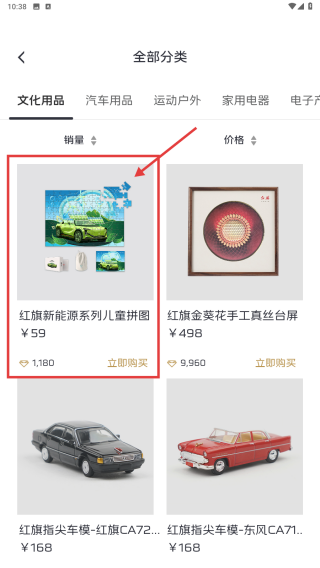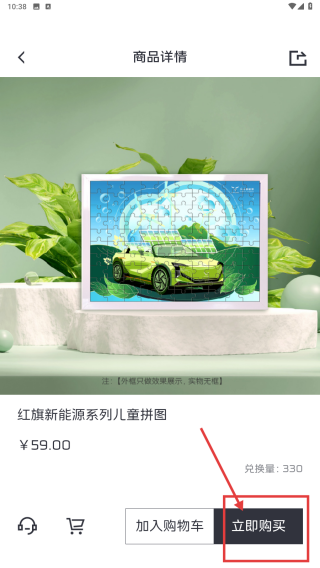 3、選擇紅旗新能源系列兒童拼圖商品條目,進入商品詳情頁面。