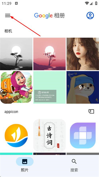 1、在Google相冊頁面,點(diǎn)擊左上角菜單圖標(biāo),彈出側(cè)邊菜單。