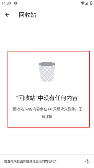 3、在回收站頁面,可查看回收站中是否有內(nèi)容顯示回收站中沒有任何內(nèi)容。
