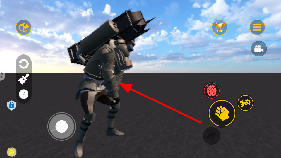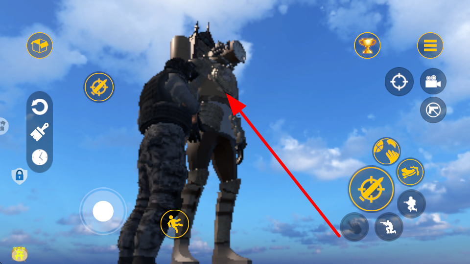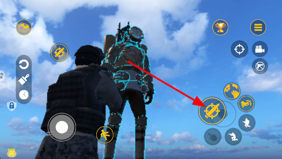 1、利用虛擬搖桿控制角色移動(dòng),朝著機(jī)甲的方向滑動(dòng)搖桿,讓角色逐步靠近機(jī)甲。
