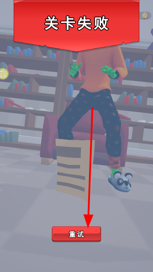 4、失敗重試時,當(dāng)出現(xiàn)關(guān)卡失敗提示,點(diǎn)擊重試按鈕,就能重新開始當(dāng)前關(guān)卡,再次嘗試通關(guān),積累經(jīng)驗操作水平。