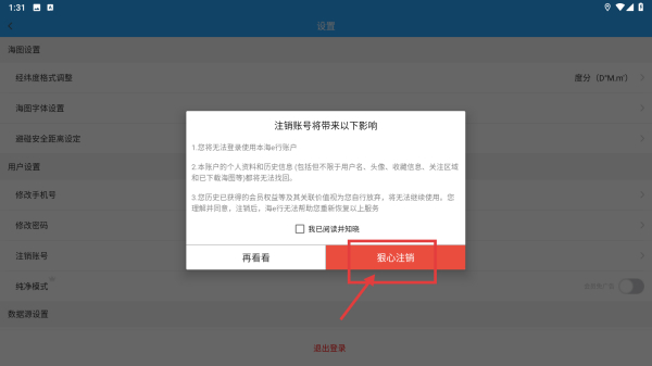 4、勾選已閱讀并理解后,點(diǎn)擊狠心注銷按鈕,完成賬號注銷操作。
