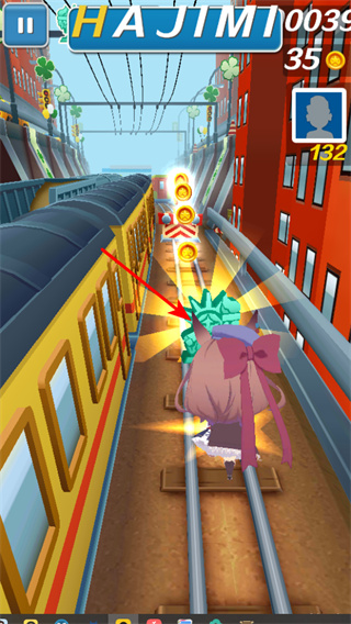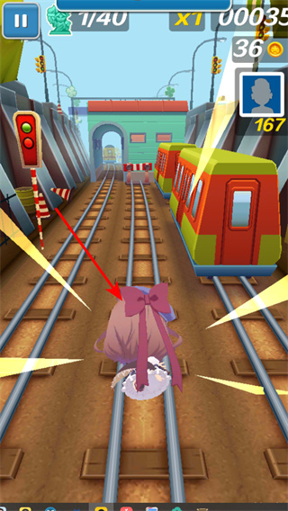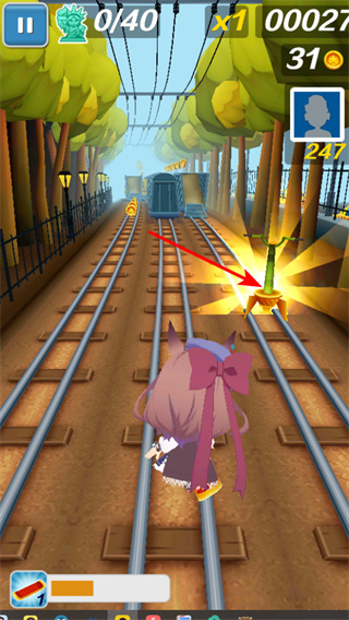 4、觸發(fā)沖刺效果,通過特定操作觸發(fā)角色沖刺狀態(tài),在軌道上快速前進,躲避火車和障礙物。