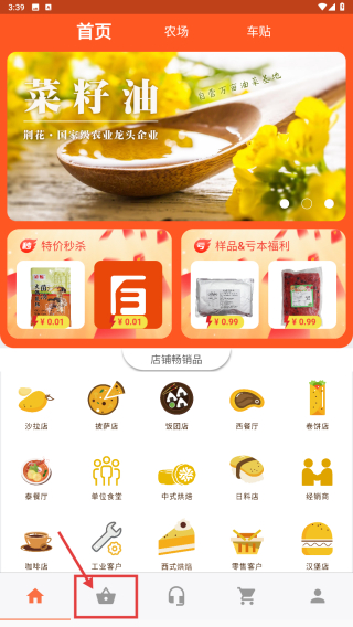 1、打開食品電商應(yīng)用,點擊底部購物車選項,進(jìn)入商品瀏覽頁面。